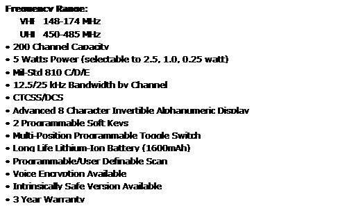 VX-800Text Box: 200 Channel 5W VHF/UHF Portable Radios
